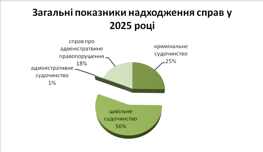 Їх процентне співвідношення від загальної кількості справ і матеріалів, що надійшли до суду у 2025 році вбачається з Діаграми.